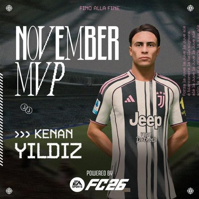 凭借出色表现,伊尔迪兹斩获EA SPORTS月度最佳球员奖项。他将在2025年尤文图斯最后一个主场赛事 ——12月20日(周六)晚 20点45分(欧洲中部时间)于安联球场对阵罗马的比赛赛前,正式领取这一荣誉。